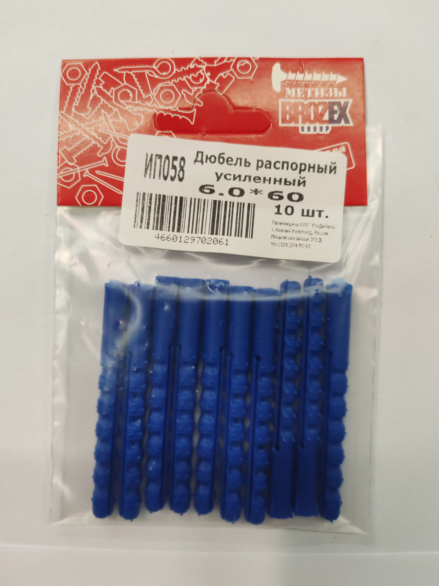 Дюбель распорный усиленный 6,0х60 (10шт) BROZEX