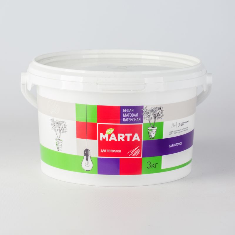 Краска МАРТА д/потолков сухая уборка белая 3 кг