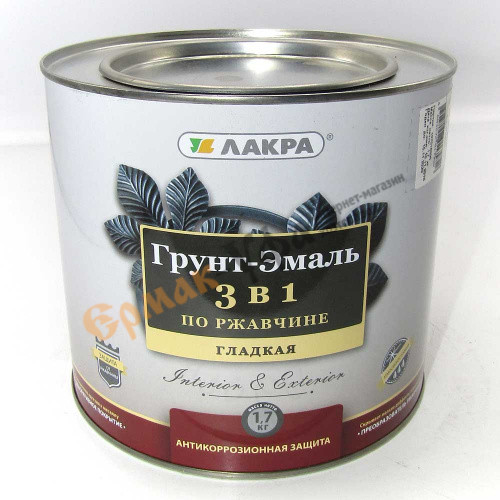Грунт-эмаль по ржавчине 3в1 белая 1,7кг Лакра