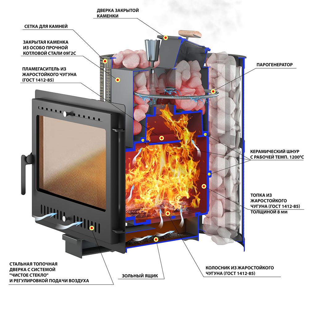 Печь Везувий Ураган Ковка 16 Панорама "М"