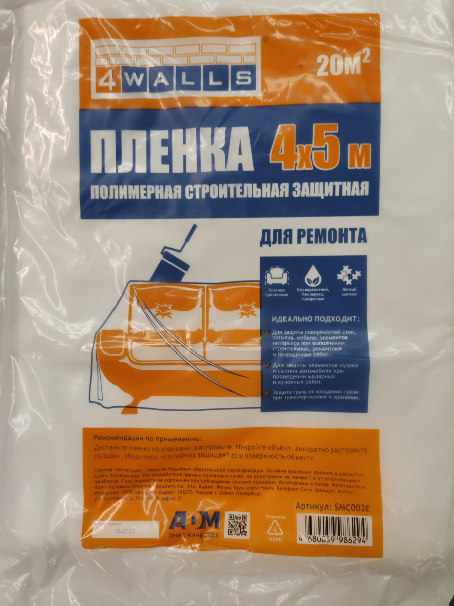 Пленка защитная 4х5м 20м2 4Walls SMC002E